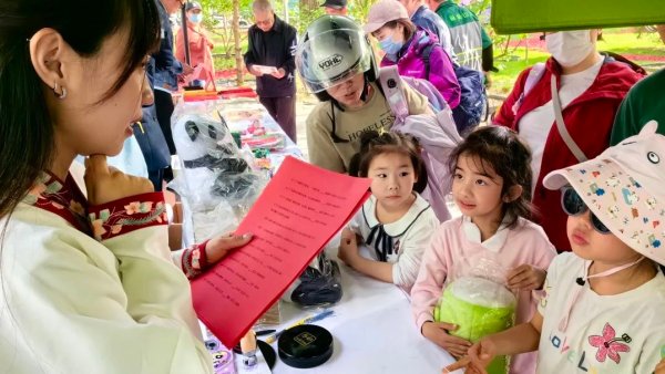 西城邮政以“展现诗意西城”为主题,在文创产品开发和互动游戏环节下足功夫,推出以丁香花和主题建筑为主要元素的异形明信片,深受年轻人喜爱。许愿打卡墙成为游客驻足留念的打卡点,诗词接龙活动则为小朋友们提供了一个游戏、展示的舞台。
