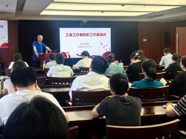 7月4日,南京市邮政工会在市分公司举办2025年度工会工作者及职工代表培训,各单位专兼职工会干部和职工代表40余人参加。