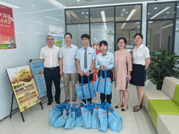 在大云金融网点、桐乡骑塘邮政,吴水军主席为为坚守岗位的金融员工送上慰问品,并与负责人亲切交谈,详细询问重点业务发展情况、日常工作难点等。吴水军主席反复叮嘱要合理安排走访时段,注意防暑降温,并鼓励网点坚定发展信心,勇于抢夺市场,保持奋发向上的良好势头。