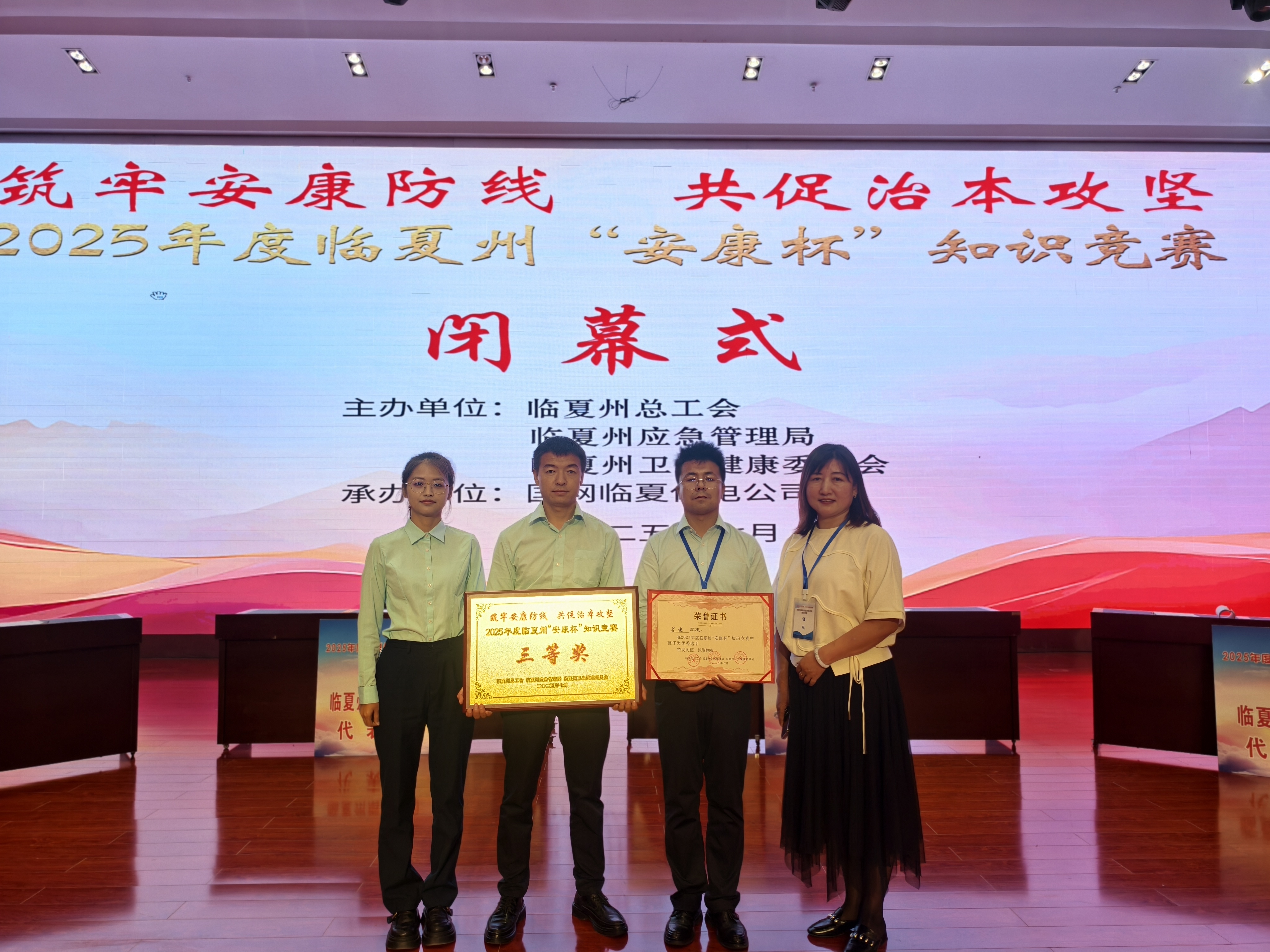 7月7日至8日,临夏州邮政分公司精心选拔积石山马龙、临夏县张学辉、人力资源部马丽娜等3名员工参加由临夏州总工会、州应急管理局和卫生健康委员会联合主办的2025年“安康杯”知识竞赛。