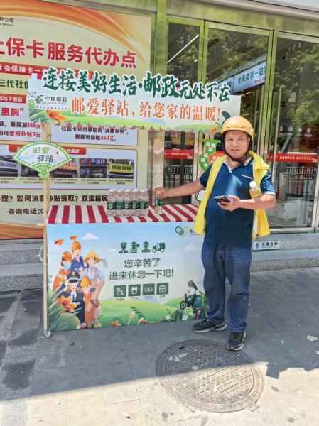 “天气热的时候,能在这里喝上冰凉矿泉水,歇歇脚,真的很方便!”一位环卫工人李阿姨笑着说道。不少快递小哥和外卖骑手也表示,邮政网点的这一举措非常贴心,解决了他们工作中饮水难、休息难的问题。