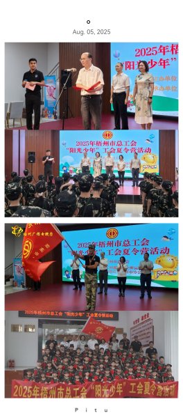 8 月 4 日上午,梧州市总工会 “阳光少年” 暑假夏令营活动在市职工之家隆重启动。本次活动由广西鑫达保安押运服务有限公司梧州市分公司承办,梧州邮政工会协同开展工作,梧州市总工会党组书记、常务副主席莫江珊在开营仪式上致辞,工会副主席李春俏、市鑫达公司总经理李少明到场参加。