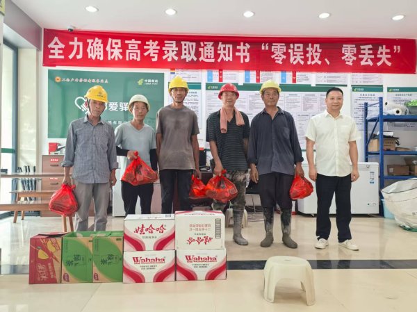 在钟祥邮政“邮爱驿站”内,宽敞明亮的休息区凉意袭人,配备齐全的防暑物资摆放有序。7月28日上午,20余名户外工作者齐聚驿站,参加“夏送清凉”专题活动。钟祥市邮政工会主席张晓华亲自为到场的环卫工人、外卖骑手等送上清凉大礼包,内含解暑饮品、防暑药品等实用物资。“大家在坚守岗位的同时,一定要注意防暑降温,确保作业安全。”张晓华的暖心叮嘱让在场户外劳动者们倍感温馨。