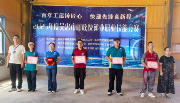 近日,2025年吴忠市邮政快递业职业技能竞赛在圆通速递分拣中心落下帷幕。吴忠市邮政分公司工会积极组织参赛,选派6名基层业务骨干组成代表队,与全市9家快递品牌选手同台竞技,最终斩获多项荣誉,充分展现邮政职工过硬的业务能力和良好精神风貌。