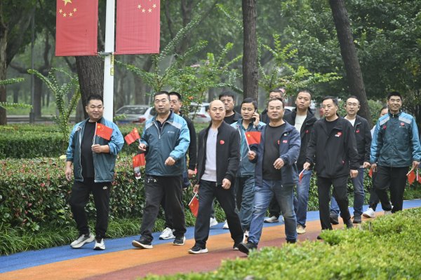 与此同时,其余职工踏上健步走之旅。大家手持小国旗,沿着步道悠然前行,时而驻足拍摄“我与国旗同框”的纪念照,时而交流工作中的趣事。
