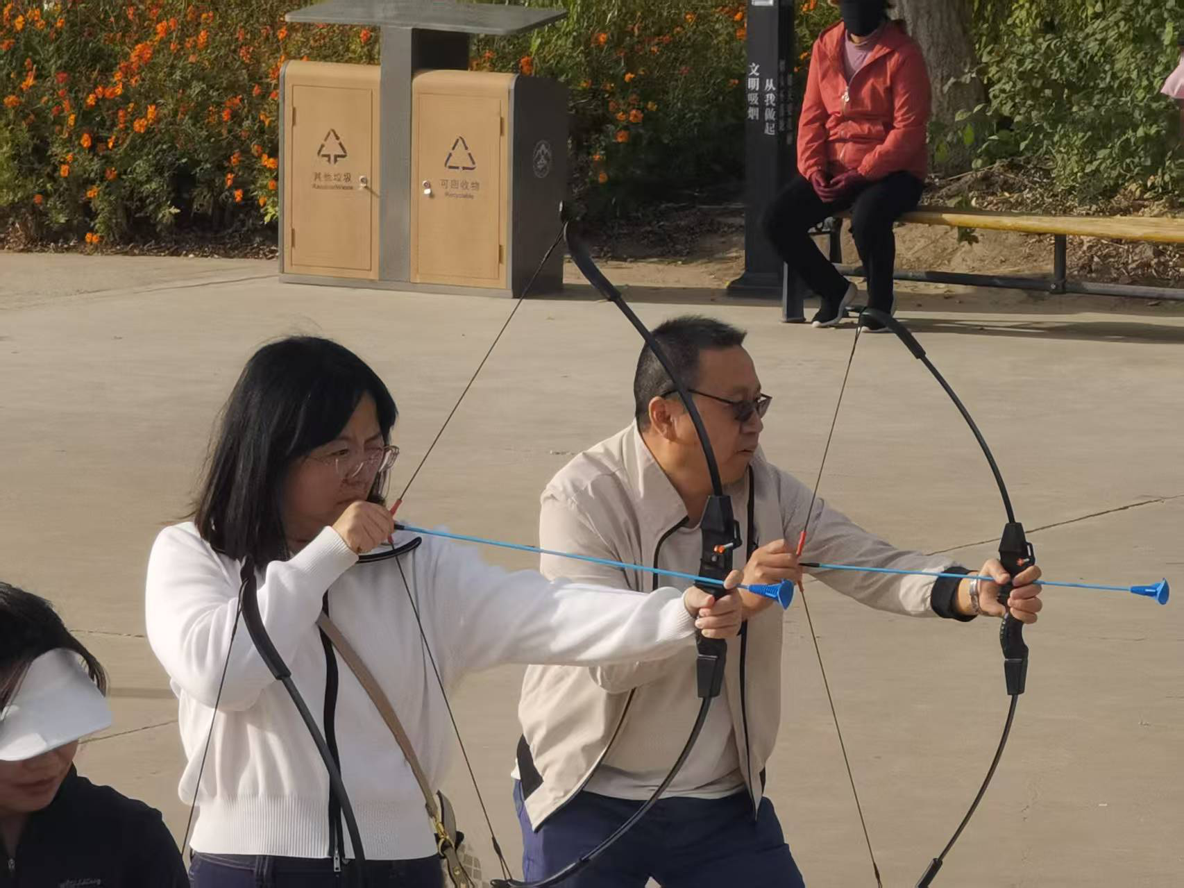活动当天,流程紧凑且井然有序。随着开幕式结束,各项赛事依次开展。环东湖健步走项目中,职工们从东湖西门口出发,沿湖前行至东湖北门铁人三项赛标志前,大家相互鼓劲、稳步前进,充分展现了积极向上的精神风貌。之后,套圈夺宝、中秋射月、国庆寻宝三大趣味项目同步推进 —— 套圈区里,职工们瞄准目标、精准投掷,套中奖品时的欢呼声此起彼伏;射箭区中,大家手握安全射箭设备,专注瞄准靶纸,累计环数角逐激烈;寻宝区里,职工们化身 “寻宝达人”,在 20 分钟内穿梭于场地各处,全力寻找带有“福”字的 “宝物” 卡片,现场热闹非凡。