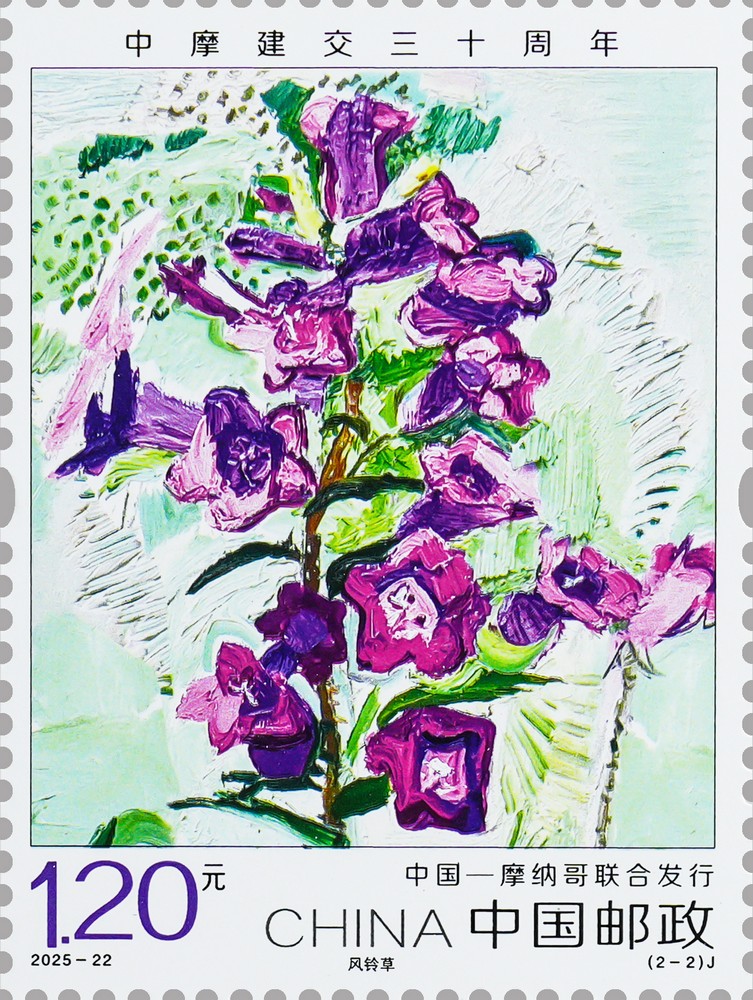 The two stamps respectively feature flowers with distinctive national characteristics and profound cultural implications for both countries. China has chosen cymbidium (orchid) which have a long history of cultivation in the country, while Monaco has selected campanula medium (bellflower) that is elegant and lively. These two types of flowers embody the innate value and spiritual pursuit of ecological civilization. The stamps convey a profound message of everlasting friendship, reflecting the shared aspirations to promote greater progress in bilateral ties and deliver more benefits to the people of both countries.