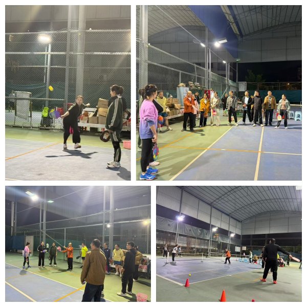 为丰富职工业余文化生活,提升职工身体素质和团队凝聚力,营造积极向上、团结协作的良好氛围,河池市市分公司于2025年11月13日晚上20:00至22:00,在河池市三桥球馆网球场成功组织了匹克球专项训练活动。公司工会主席张振焘、副总经理陈敏高度重视并亲自到场,与本部职工一同投入训练,充分体现了公司对职工文体活动及运动会备战工作的高度重视。