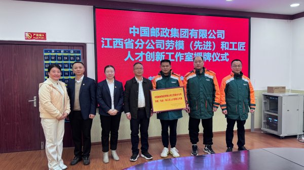 2025年12月30日上午,江西省抚州市邮政工会吴绍贵主席为2025年11月19日被命名为“中国邮政集团有限公司江西省分公司劳模(先进)和工匠人才创新工作室”的“抚州市分公司许海华劳模创新工作室”举行了简朴而庄重的授牌仪式,吴绍贵将沉甸甸的牌匾授予了劳模创新工作室领衔人许海华同志。