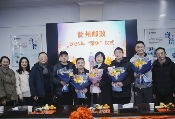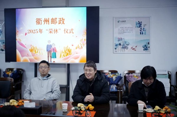 12月25日下午,衢州市分公司为2025年下半退休员工举办了荣休仪式,衢州市分公司党委书记、总经理詹旭波、工会副主席戚伟芬以及退休员工所在部门负责人参加。