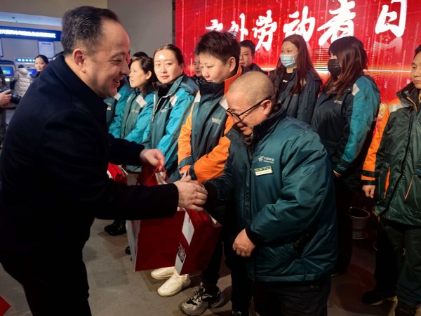 1月15日,陕西省国防工会在西安市高新路电信营业厅隆重举办“工会驿站服务户外劳动者日”活动,旨在向辛勤工作的户外劳动者表达敬意与关怀,并送去温暖的慰问。