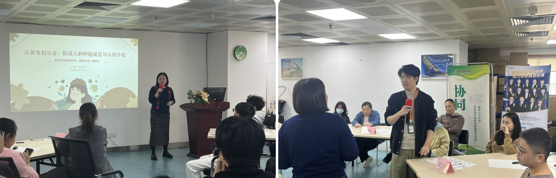 1月16日,11183广州中心工会成功举办以“从紧张到从容:职场人的呼吸减压与认知升级”为主题的心理团辅课,旨在帮助员工科学应对职场压力,提升心理韧性与情绪调节能力。