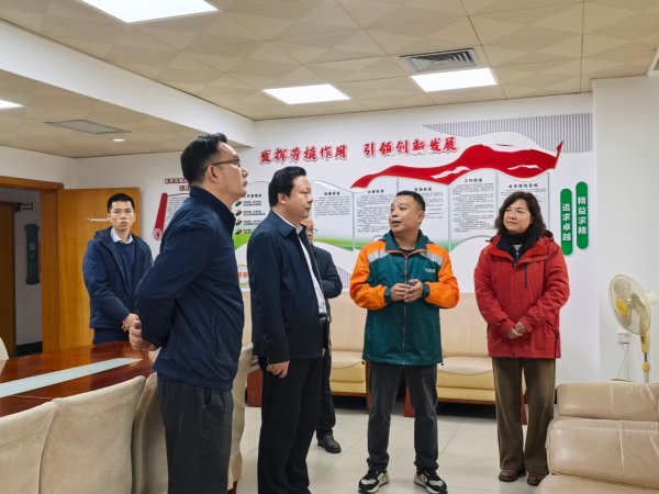 1月20日上午,梧州邮政管理局副局长李欢和梧州市委社会工作部陈小勇副部长、潘麒宇科长一行6人联合组建调研组,深入梧州市邮政分公司朱哲劳模创新工作室开展专题调研,实地考察工作室党建融合、技能传承、服务创新等工作成效,就邮政快递行业高质量发展、新业态群体服务保障等议题开展座谈交流。梧州邮政分公司寄递服质部副经理陈壮育、工会原副主席李春俏及全国劳动模范、工作室带头人朱哲陪同调研。