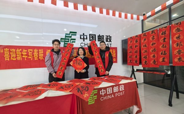 短短两小时活动,墨香四溢,氛围热烈。书法老师挥毫泼墨,为客户送上寓意吉祥的春联和福字,一幅幅精美的书画作品在老师笔下应运而生。这些作品不仅展现了老师深厚的艺术功底,表达了老师们对邮政事业的热爱和祝福,更是让广大客户和员工深切感受到了来自省、市邮政工会的温暖与关怀。
