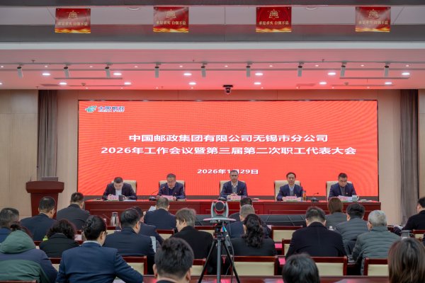 无锡市邮政分公司1月29日召开二届三次职工代表大会。会议全面贯彻落实中央经济工作会议精神、集团公司工作会议和全省邮政工作会议要求,总结2025年工作,分析形势任务,部署2026年工作,动员全市邮政干部员工统一思想,坚持质量优先、聚力转型攻坚,持续深入推进无锡邮政高质量发展。