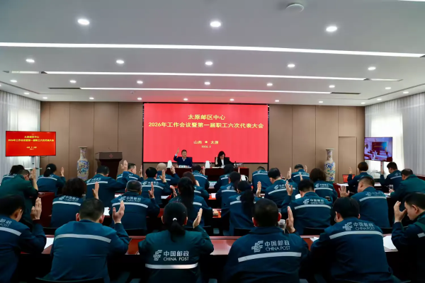 2月4日上午,太原邮区中心召开了2026年工作会议暨第一届职工六次代表大会。中心领导、全体中层管理人员、职能管理和支撑人员、班组长、职工代表参加了会议,会议由纪委书记龚宏主持。