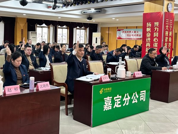 会议最后号召:踔厉奋发创佳绩,笃行不怠谋新篇。在2026年的工作中,我们要坚持深入贯彻落实党的二十大和二十届历次全会精神。嘉定邮政全体干部职工将以更加坚定的信心、更加务实的作风、更加昂扬的斗志,固本夯基、聚力攻坚、开拓创新、谋求突破,以实干担当姿态推动嘉定邮政高质量发展提质增速!