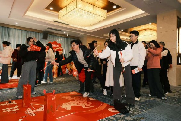 游园会设置六大游戏区,涵盖抓娃娃、滚滚乐、欢乐投壶、新春糖画等项目,融合传统与现代趣味。员工在互动中比拼乐趣,投壶感受古韵,糖画带来年味,集章打卡记录欢乐瞬间。此外,新春文化体验区的写福字、拓年画、小丑气球互动等活动,吸引员工踊跃参与,大家在体验中传承文化、合影留念。