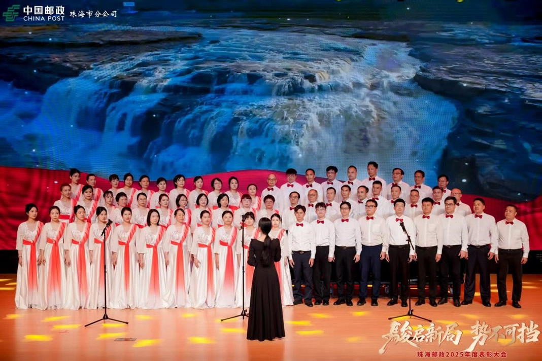 2月10日晚,伴随着雄壮激昂的开场鼓声,珠海邮政2025年度先进表彰颁奖晚会在珠海市工人文化宫隆重举行。珠海市分公司党委书记、总经理朱平,副总经理兼工会主席李 敏等党政领导班子全体成员出席会议,并为2025年度先进单位、先进个人及先进工会组织、优秀工会工作者逐一颁发奖状。