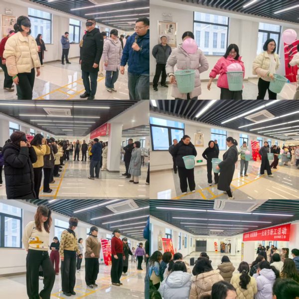 “马不停蹄”活动:以十人为一组参与活动,每人戴好眼罩进入挑战区域,在规定时间内跟随音乐的旋律进行踏步。最后统计过程中未出挑战区域的人员数量,哪个队伍多,哪个队伍获胜。“闹元宵”活动:在规定时间内,全队十人一起参加,每人背着一个纸篓拿着一个“元宵——气球”,用手将气球向上抛起,然后用背着的纸篓接住,根据十人完成时间进行名次排序。本次活动兼具趣味性、互动性与文化性,既让职工感受了浓浓的节日氛围,也进一步增进了同事间的友谊,展现出了职工们团结进取、蓬勃向上的精神风貌。