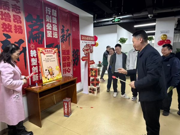 活动中,员工们手持游园卡,纷纷奔赴各个关卡踊跃参与。滚圈与投壶区内,大家全神贯注、各展身手,成功闯关时的喝彩声、欢呼声此起彼伏;写春联专区里,笔墨飘香,大家新年祝福,笑语盈盈间满是温情;猜灯谜区更是热闹非凡,五颜六色的灯谜条挂满现场,员工们或驻足沉思,或结伴讨论,沉浸在解谜的乐趣之中。
