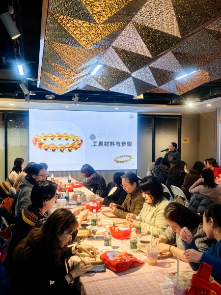 活动于当日下午在盛邦国际大厦温馨开启。步入活动现场,精心布置的环境瞬间营造出轻松愉悦的交流氛围。本次活动设计了特色环节,女职工们通过现场抽签,分别参与到“巧手慧心”水晶手链DIY与“丝韵风华”时尚方巾佩戴学习两个项目中。在专业老师的悉心指导下,手作区的女职工们认真挑选水晶配珠,学习编织技巧,指尖流转间,一件件独一无二、闪耀个人审美的专属手链逐渐成型。方巾学习区则化身为实用的时尚课堂,老师系统讲解了方巾的多种系法,从通勤干练的职场风格到休闲优雅的日常搭配,女职工们边学边练,互相交流,在方巾的巧妙变换中发掘出新的自我魅力。整个学习过程充满了探索与分享的乐趣,欢声笑语不断。