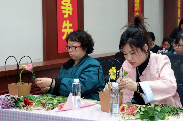 随后,在花艺老师的专业指导下,大家认真学习选枝、修剪、搭配、造型,将玫瑰、康乃馨、洋桔梗等鲜材巧妙组合,在指尖勾勒出层次丰富、意境优美的花艺作品,在动手创作中感受自然之美、陶冶艺术情操。活动现场暖意融融、花香四溢,大家相互交流、互相学习,分享着插花过程中的乐趣和心得,欢声笑语回荡在整个活动现场。