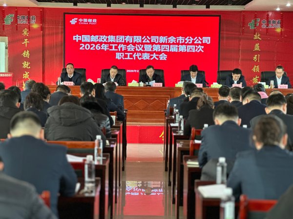 2月8日,新余市分公司召开2026年工作会议暨第四届第四次职工代表大会。会议传达了新余市政府副市长舒永忠的工作批示精神。市邮政管理局党组书记、局长胡文良出席会议并讲话。与会职工代表审议了市分公司党委书记、总经理蔡平作题为《效益引领发展 实干铸就成功 为推进新余邮政高质量发展取得新突破而接续奋斗》工作报告。会议总结了2025年工作成绩,分析了发展形势与机遇挑战,部署了2026年的工作目标任务。