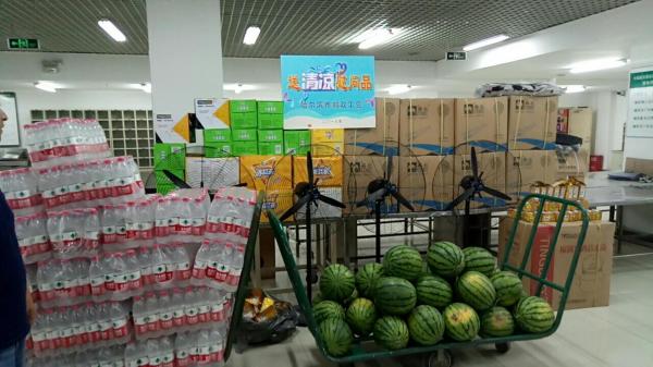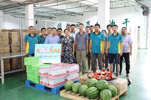 近日,哈市迎来持续高温天气,骄阳考验着每一位坚守在一线岗位的职工,更牵动着市公司领导们的心。7月30日,哈尔滨市邮政工会王毅主席、徐海滨副主席带队组成的慰问团队先后对六个区分公司、函件广告局商函制作中心、包裹业务局电商运营中心、报刊发行局等15家基层单位奋战在一线的职工进行了亲切的慰问,并送上了防暑降温用品:西瓜、茶叶、矿泉水、饮料、风扇、电水壶等。