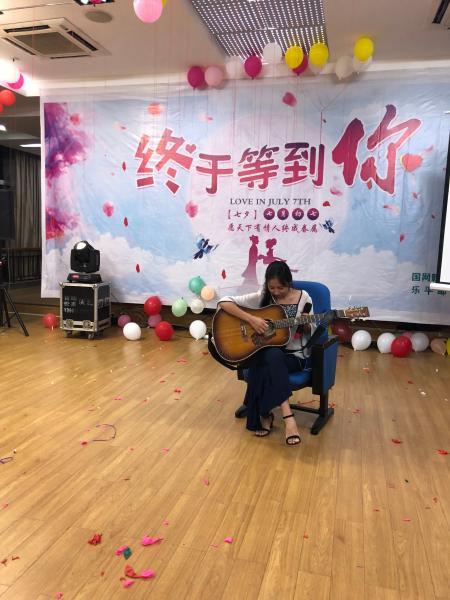 此次活动以朗诵、弹唱、游戏等形式开展,充分展现了青年职工多才多艺的风貌。双方青年男女职工通过朗诵、弹唱节目,敞开心扉,绽放激情,展现风采,逐渐加深了彼此的交流和友谊,收获着甜蜜。最后进入“采蘑菇”游戏环节,男生大胆出击,邀请心仪的女生组成搭档。男生蒙上面罩,背起女生,通过女生的指引引爆气球,整个游戏环节气氛热烈,笑声掌声不断。