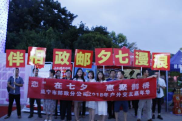 七夕之夜,咸宁市邮政工会组织15名单身青年职工参加由咸安区委宣传部、老干局、区总工会、共青团咸安区委、区妇联等联合主办的“恋在七夕”大型户外相亲交友活动。