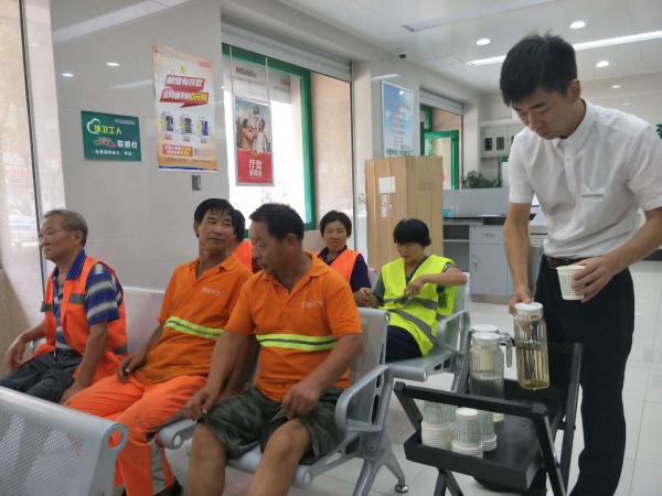 近期,持续高温,酷暑难耐,环卫工人无疑是整日忙碌在街道上最辛苦的人群之一。为践行邮政人长期以来的社会责任,努力给这个社会带来温暖的正能量,鄠邑区甘亭营业所利用画展街与草堂路交叉口人流密集的临街条件,在厅堂专门为这样一群人开辟了一处“环卫工人歇脚点”。在这里为环卫工人提供免费饮品、免费休息、免费卫生间,让环卫工人在辛劳之余,倍感舒心,让大家在炎炎夏日多一处贴心的歇脚点。