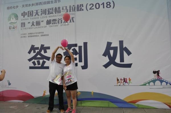 8月17日,农历七夕。相约七夕.天河水乡(郧西)田园生活节——中国天河爱情马拉松长跑(2018)暨《大雁》邮票首发式活动在著名七夕文化传承地湖北省郧西县举行。在全县500余人的长跑队伍中,6名邮政职工的健康风貌格外耀眼。