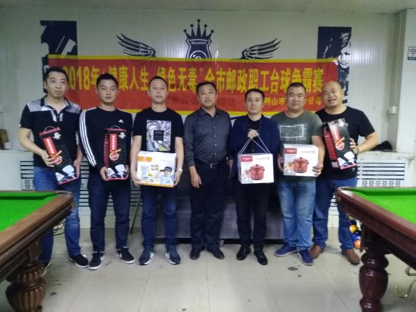 双鸭山市邮政工会于9月21日上午,举办了2018年“健康人生、绿色无毒”全市邮政职工台球争霸赛。此次赛事是为了积极响应市总工会关于进一步深化全民禁毒的宣传工作,提高全民识毒、拒毒、防毒能力,同时也是为纪念改革开放40周年,迎接中秋、国庆两大节日,不断丰富全市邮政职工的业余文化生活,增进职工间的沟通与交流而举办的。此次比赛共有20名选手参加,比赛以小组循环和淘汰赛制进行。比赛共进行了6个多小时。