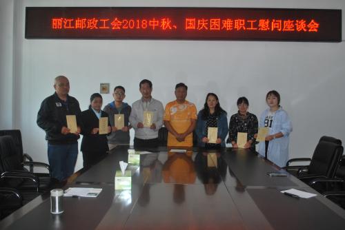 省邮政工会2018年中秋、国庆送温暖活动作出安排后,丽江市邮政工会认真落实。9月21日在分公司三楼会议室举办慰问暨中秋座谈,前来参会的困难职工脸上洋溢着喜悦和感恩之情,他们共同感受邮政企业各级工会组织对困难职工的关怀和温暖,度过了一个温暖、难忘的中秋佳节。