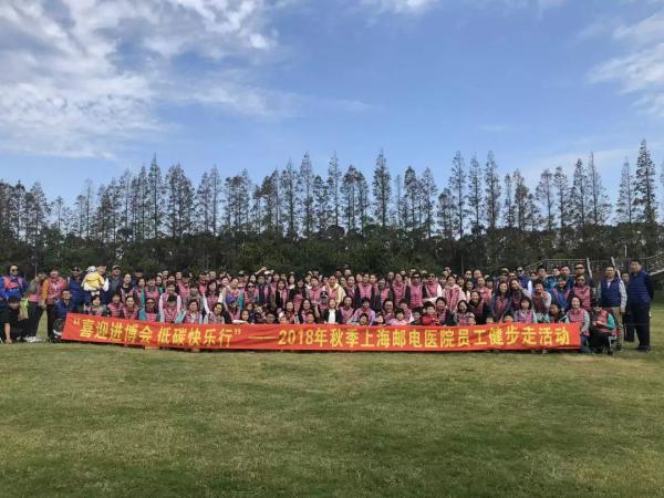 为迎接中国首届国际进口博览会的到来,同时丰富医院职工业余生活,增强团队凝聚力,营造健康向上的工作氛围,10月21日,上海邮电医院举行“喜迎进博会 低碳快乐行----2018年秋季健步走活动”。