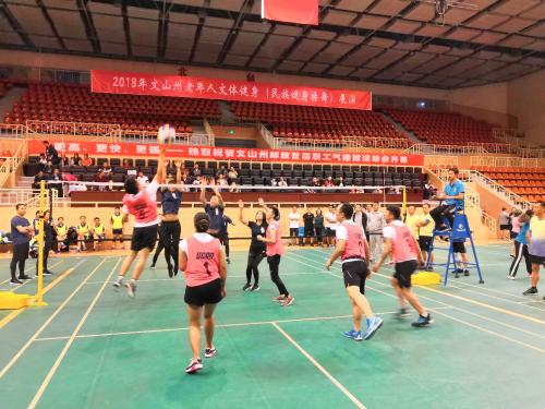 国庆前夕,由文山州分公司、州邮政工会主办的“决战跨年度战役,誓夺开门红胜利”——文山州邮政首届职工气排球运动会在州民族体育馆举行,来自全州7个县分公司和州分公司直属机关、营业局共9支代表队参加了运动会。