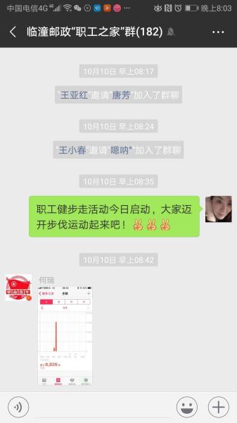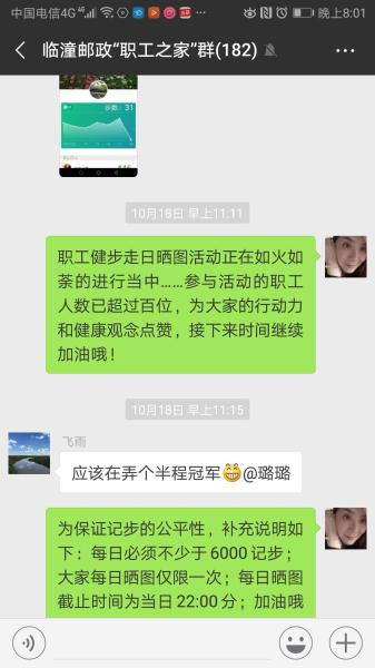 近期以来,由临潼分公司工会组建的“临潼邮政职工之家”群平台,每日傍晚后群里的消息和图片纷繁不断、气氛热络不已。原来,分公司近乎过半的职工,都在班前班后徒步上下班,积极踊跃的参与工会组织的“我环保,健康徒步伴我行”的晒图活动......