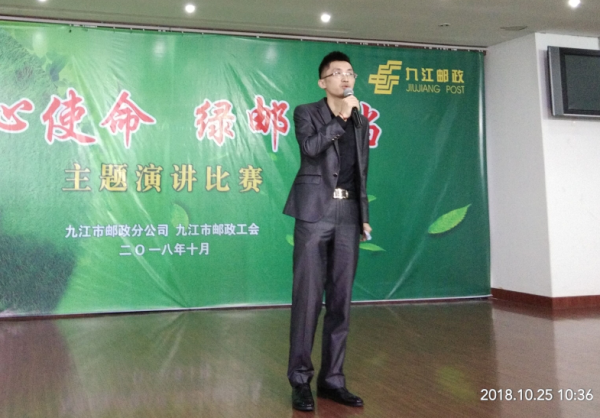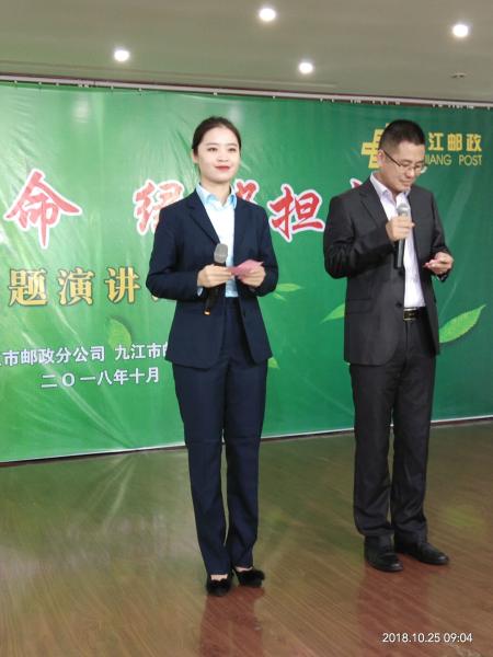 10月25日下午,为充分展示企业良好形象和企业员工爱岗敬业、奋发有为的精神风貌,由九江市分公司和市邮政工会联合举办了“初心使命 绿邮担当”主题演讲比赛决赛。