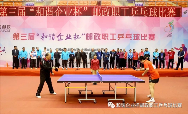 10月23日,备受期待的第三届“和谐企业杯”邮政职工乒乓球比赛在有着“国乒基地”美誉的湖北省黄石市开幕。来自31个省(区、市)邮政分公司,集团公司总部、邮储银行总部、寄递事业部、中邮保险总部、中邮证券总部,集团公司直属单位以及香港邮政、澳门邮电的38个代表队共346名运动员,将进行男女混合团体、高管单打等9个项目的角逐。这是中国邮政集团公司为深入贯彻党的十九大报告“广泛开展全民健身活动,加快推进体育强国建设”的精神,以及落实国务院关于深化体育改革、发展群众体育、倡导全民健身新时尚、推进健康中国建设的重要部署,更好地展现邮政职工昂扬向上、和谐奋进的一次体育盛会。