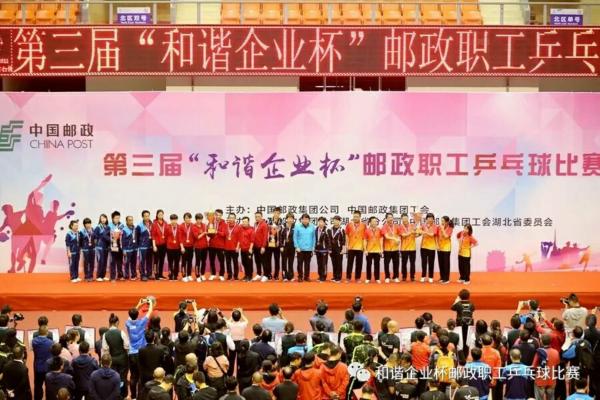 10月23日,由中国邮政集团公司、中国邮政集团工会联合主办的第三届“和谐企业杯”邮政职工乒乓球比赛,在“国乒基地”湖北黄石精彩开赛。经过四天赛程完成了所有的比赛项目,于10月26日下午胜利闭幕。