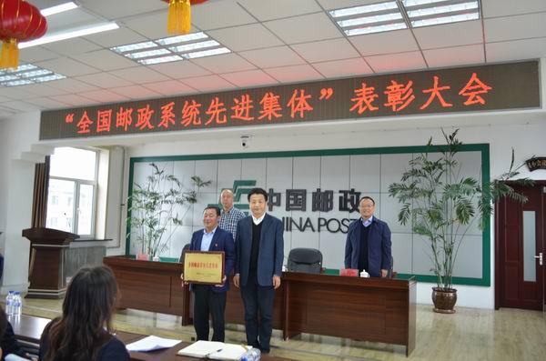 在四季度旺季攻坚战全面打响之际,10月31日,德惠市分公司隆重召开“全国邮政系统先进集体”表彰大会。省邮政工会副主席李永生、经济工作部部长施向群、长春市分公司副总经理、工会主席李远飞亲临会场,向德惠市分公司总经理刘新红颁发“2014—2017年度全国邮政系统先进集体”奖牌。