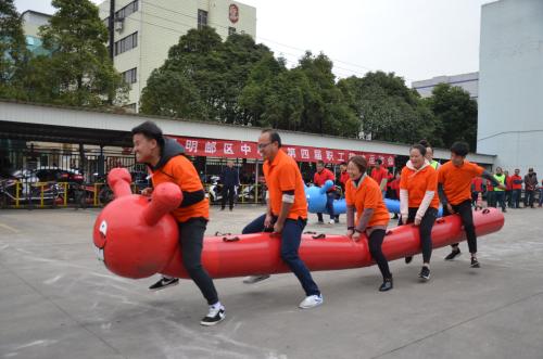 文艺节目之后进入了激烈热闹的比赛。此次运动会参与人数众多,涵盖了全局各部门、各单位,充分体现了群众性体育运动的全面性。“摸石头过河”、“同舟共济”、“奔跑的毛毛虫”及拔河等团体项目集趣味性、娱乐性、协作性和竞争性于一体,既是力量的角逐,又是智慧的较量,既是参赛队员的风采展示,也是对团队协作能力的检验。在此起彼伏的加油声、掌声和欢笑声中,网运职工踊跃参赛、顽强拼搏,完全沉浸在趣味运动的快乐和团队协作的海洋之中。