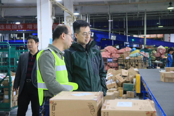 刘主席重点走访邮件处理中心作业现场、国际小包作业现场及速递快包作业场地,详细了解邮速整合后的人员配置、设备运行、高速安检、作业组织及安全生产等情况,对中心局寄递翼改革后的资源整合工作给予充分的肯定。刘主席指出,要严格按照“双十一”生产方案进行组织安排,做好员工的工作环境、作业内容、生产生活等后勤保障工作,围绕支撑全网做好各项工作。同时,刘主席一行还走访了二枢纽食堂,了解员工的饮食用餐情况,关切员工健康,并嘱咐中心局干部职工,在日夜奋战的同时也应保重身体,以饱满的精神投入生产。另外,要积极宣传旺季生产期间不畏艰难、不怕牺牲、奋勇拼搏的先进事迹,引导员工树标杆、建新功,激发员工的工作动力和干劲,圆满完成旺季通信生产各项任务。