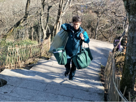 山上单位的员工下山不易,工作一、二个月才有一次短暂的假期,网购便是她们购买商品的又一渠道,白云宾馆小买铺的女店主告诉我们,小伙子很阳光,充满活力,话语不多但待人和气,他工作辛苦,但从不抱怨,不怕苦、不怕累,令人佩服,在我门景区是见不到其他快递公司快递员的,只有你们邮政,长年累月、尽心尽力的为我们服务,很了不起。