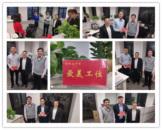 2018年11月1日下午,战略客户部工会小组和轮值监督员在全部门组织开展“最美工位”评选活动。此次正式评选邀请到部门周颖辉总经理和庞任平副总经理参加。以布置干净整洁、摆设美观大方、工作方便高效等几个方面为标准,最终代博夏、林政、杨官雨、王宇哲、高晓宇、孔悦、吴宏亮、邱龙庭等八位同事的工位获评“最美工位”荣誉称号,周总、庞总向上述同事颁发了本期“最美工位”流动桌牌。