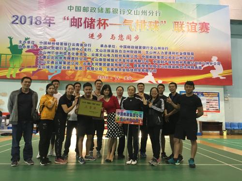 中国邮政储蓄银行文山州分行举办的2018年“邮储杯”气排球联谊赛,11月10日在文山盘龙体育馆举行,州税务局、人民银行、工信委等15个单位组队参加。