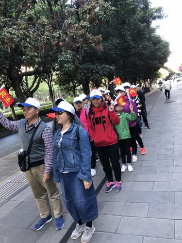 为做好组织工作,工会拟定了详尽的活动方案,对徒步线路作了合理的规划,对行进途中如何开展宣传作了安排,下发了印制着社会主义核心价值观的手持小旗。活动当日,大家早早来到集合点整装待发,在长约7公里的徒步路上,职工们或交流生活或拍照留影,个个倍感兴奋。抬头仰望碧蓝的天空,做个深呼吸清醒的空气洗去了工作的辛劳,人人精神抖擞。一路自然的景致,深深触动了职工们对大自然的向往和热爱,脸上洋溢着快乐的笑容。