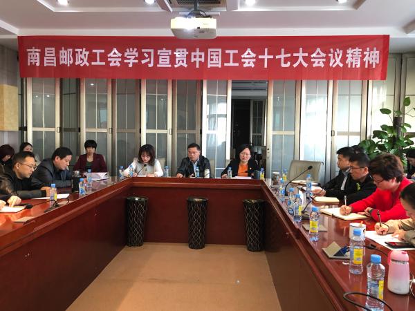 为深入学习宣传贯彻习近平总书记重要讲话精神和中国工会十七大精神,11月29日下午,南昌市邮政工会组织召开学习宣传贯彻中国工会十七大精神专题会。市分公司副总经理、工会主席雷武高及各部门工会主席、专兼职工会干部共38人参加了专题学习会。