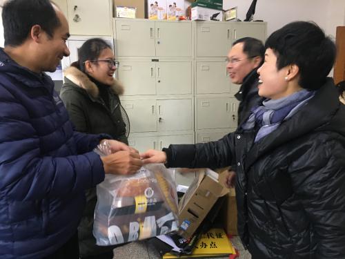 12月31日一早,州分公司朱佳丽总经理一行代表党政工,来到州分公司机关财务部、营业局、金融业务部、中心机房等加班的部门,对奋战年终结算及加班的职工给予关怀和慰问。朱佳丽代表州分公司党政工领导向加班的干部职工表示新年的祝福,对于他们为了工作主动放弃与家人的团聚给予充分的肯定,并亲手将包含着企业关怀和新年美好祝福的慰问品送到干部职工手中。